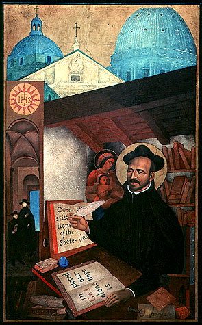 Thánh I-nhã đang viết Hiến Chương Dòng