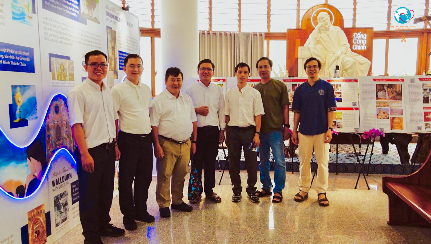 Trong bầu khí ấm áp và tràn đầy niềm vui, cha Tôma Vũ Ngọc Tín, S.J. - Giám đốc Mạng lưới Cầu nguyện Toàn cầu của Đức Giáo Hoàng tại Việt Nam, đã trực tiếp hướng dẫn đoàn tham quan và giới thiệu ý nghĩa của năm chặng triển lãm tại Núi Cúi.