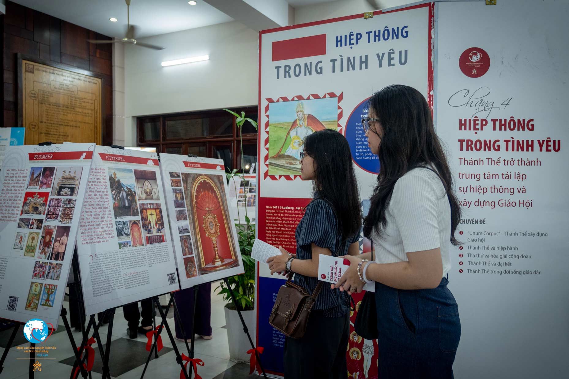 Sau thánh lễ khai mạc, cộng đoàn quy tụ tại Hội trường Học viện Thánh Giuse - Dòng Tên để tham dự nghi thức khai mạc. Khoảnh khắc này như mở ra một hành trình mới, mời gọi mỗi người chiêm ngắm những phép lạ Thánh Thể đã được Giáo Hội công nhận trên khắp thế giới. Chương trình không đơn thuần chỉ là trưng bày, nhưng là hành trình suy niệm, giúp người tham dự cảm nếm sâu hơn tình yêu Thiên Chúa nơi Bí tích Thánh Thể là nguồn nuôi dưỡng đời sống Đức Tin của mỗi Kitô hữu.