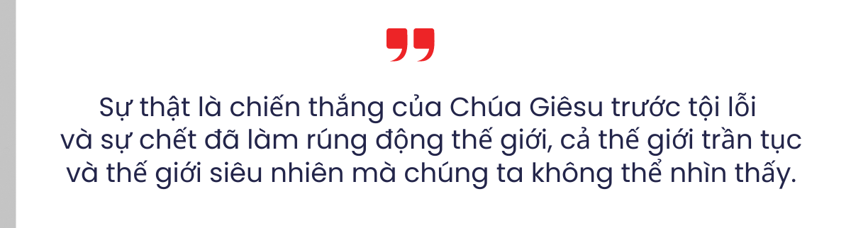 Sự thật là chiến thắng của Chúa Giêsu trước tội lỗi và sự chết đã làm rúng động thế giới, cả thế giới trần tục này và thế giới siêu nhiên mà chúng ta không thể nhìn thấy.
